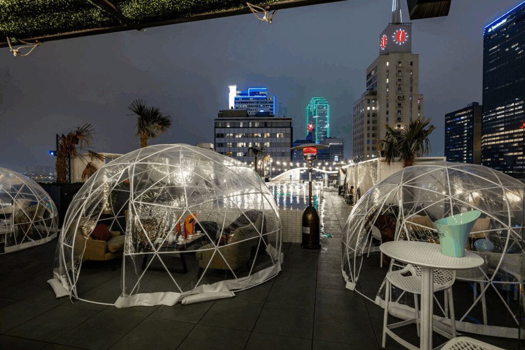 Returning for another winter season at Waterproof in The Statler Hotel is the iconic Winterproof Snow Cloud experience. Rise to the 19th floor of the hotel to take in sky-high views of downtown Dallas while staying warm in their “snow clouds.” Guests and their party can enjoy holiday cocktails and great bites in the private globe. For reservations and more information, visit their website.
